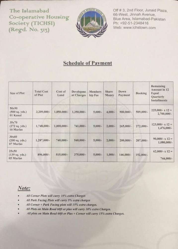 Ichs town 4 marla commercial and 5, 7, 10 marla & 1 kanal residential plot for sale