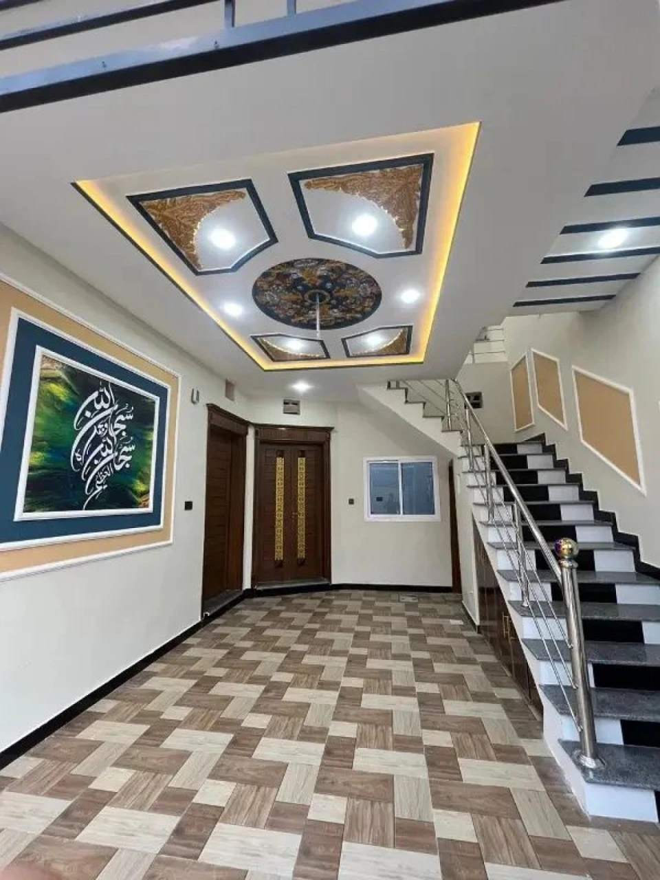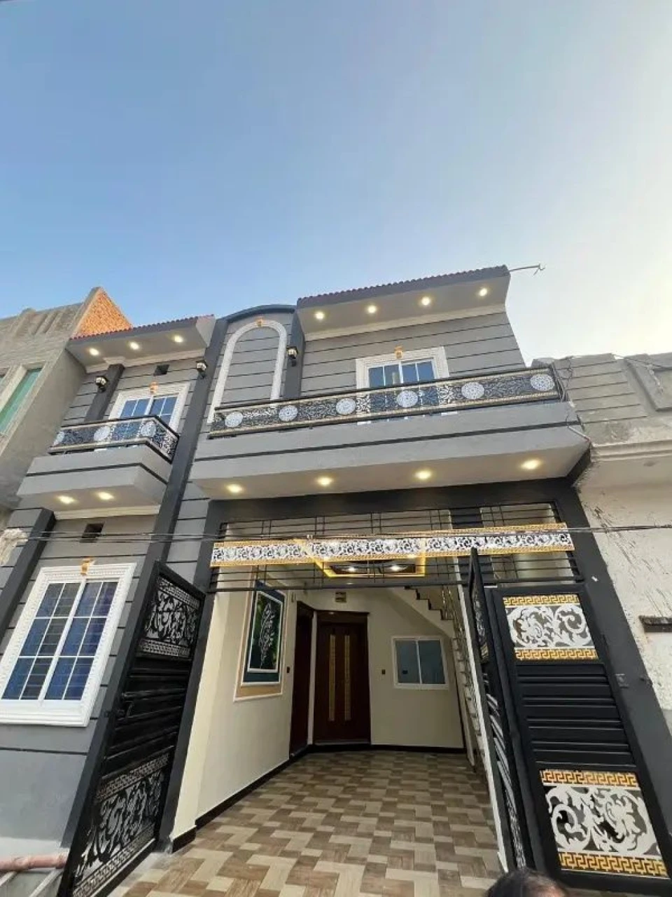 Ground Floor 2Beds Drawing Tv Lounge Car Porch Kitchen 3Washrooms Upper Story 2Beds Tyres Tv Lounge kitchen 2Washrooms Bijli Meter 30Ft Matle Road Masjid Park Security System Gated community Full Tiled House