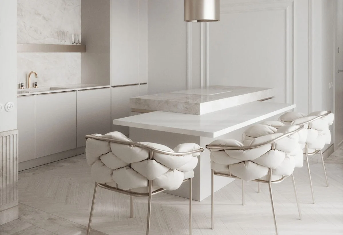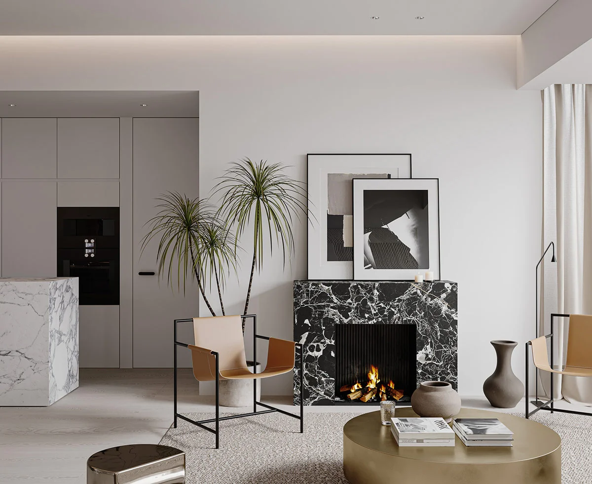 Light & Luxurious White Interior With Mirror & Marble Accents