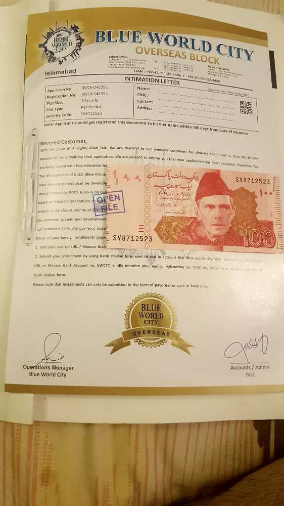 10 marla file blue world city overseas block