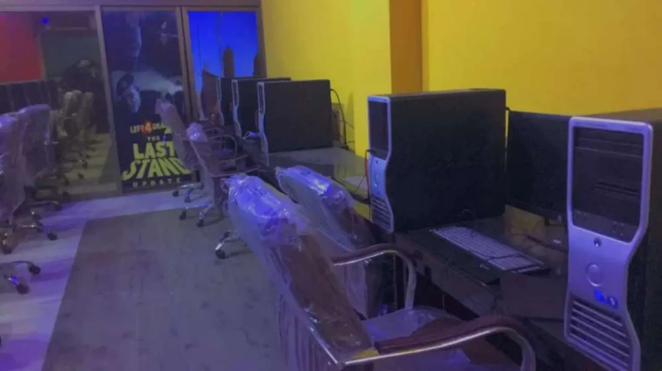 10 play stations plus one pc on counter. CCTV cameras installed.