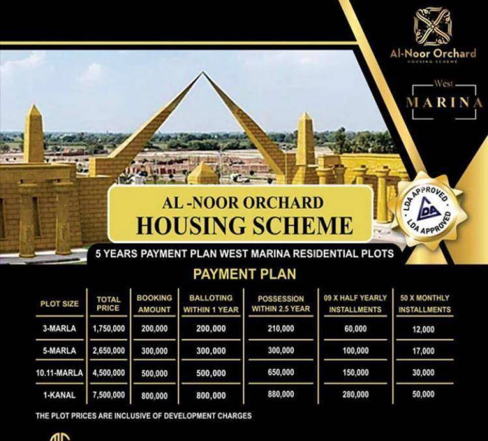 Al-noor orchard (west marina) 3 marla residential polt