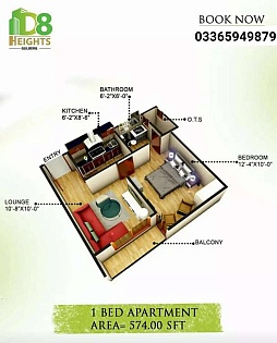 Serene heights gulberg islamabad 691 sq.ft 1 bed apartment on installm