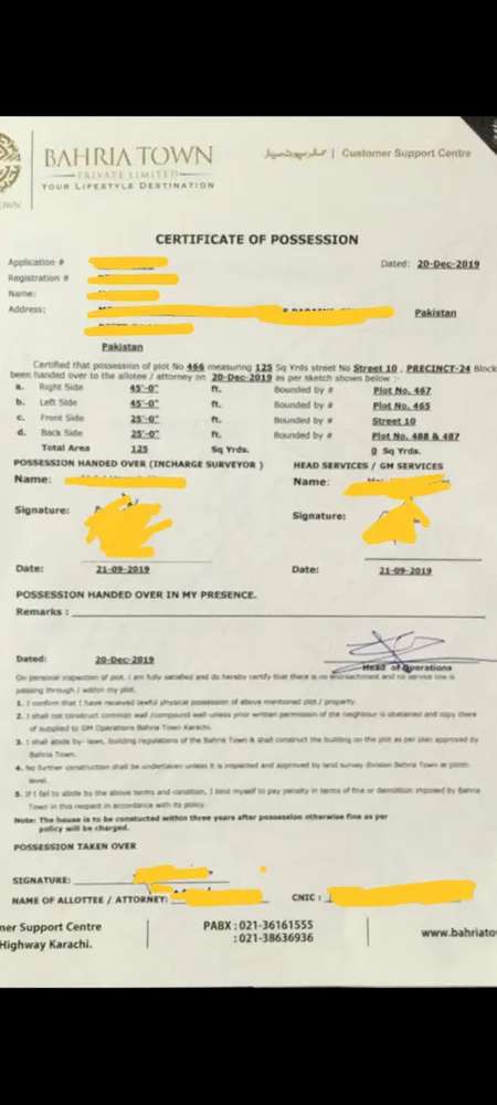 I block 10 marla plot 250 map and possession chargs paid .
