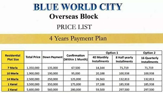 Low rate 7 marla blue world overseas