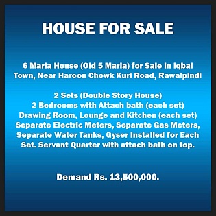 6 marla house for sale in iqbal town near haroon chowk kuri road, rwp