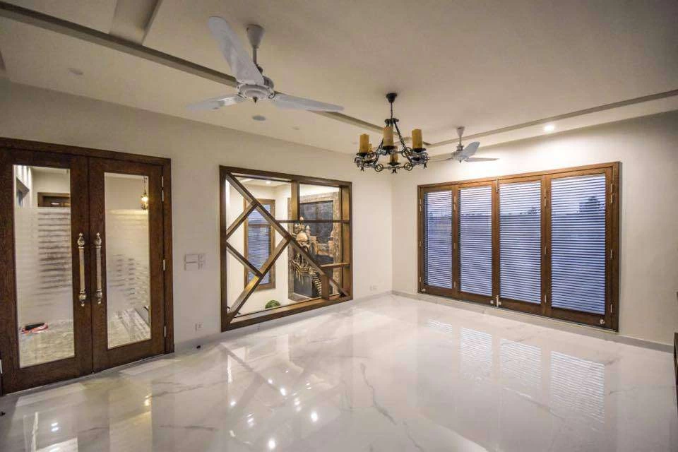 23 Marla brand new house for sale in dha phase 6 Spanish Design out class location 5 bed room with attached tiled tub shower cabin bath ideal location Double units Drawing Dinning TV Lounge imported kitchen store servant quarter lush green lawn car parking space demand 685 lac