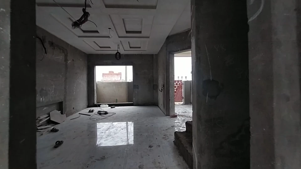 Grey Structure at prime location, corner house with complete floor tiles and fall ceilings. Complete electric wiring and sanitary work.