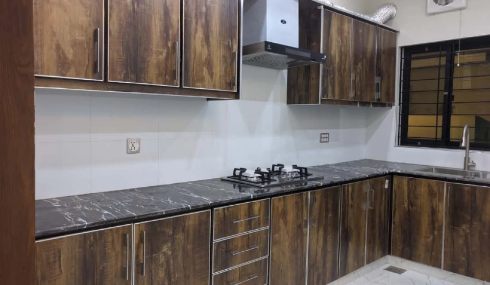 The house itself is built following the advanced technical standards of modern construction. Spanish tiles, american styled open kitchen on the upper floor and an elaborate main kitchen on the ground floor are the crown jewel of this luxurious abode. High quality aluminum and glasswork as well as reliable electricity wiring with failsafe circuitry, solid reliable woodwork and cabinetry, and tastefully designed bedrooms