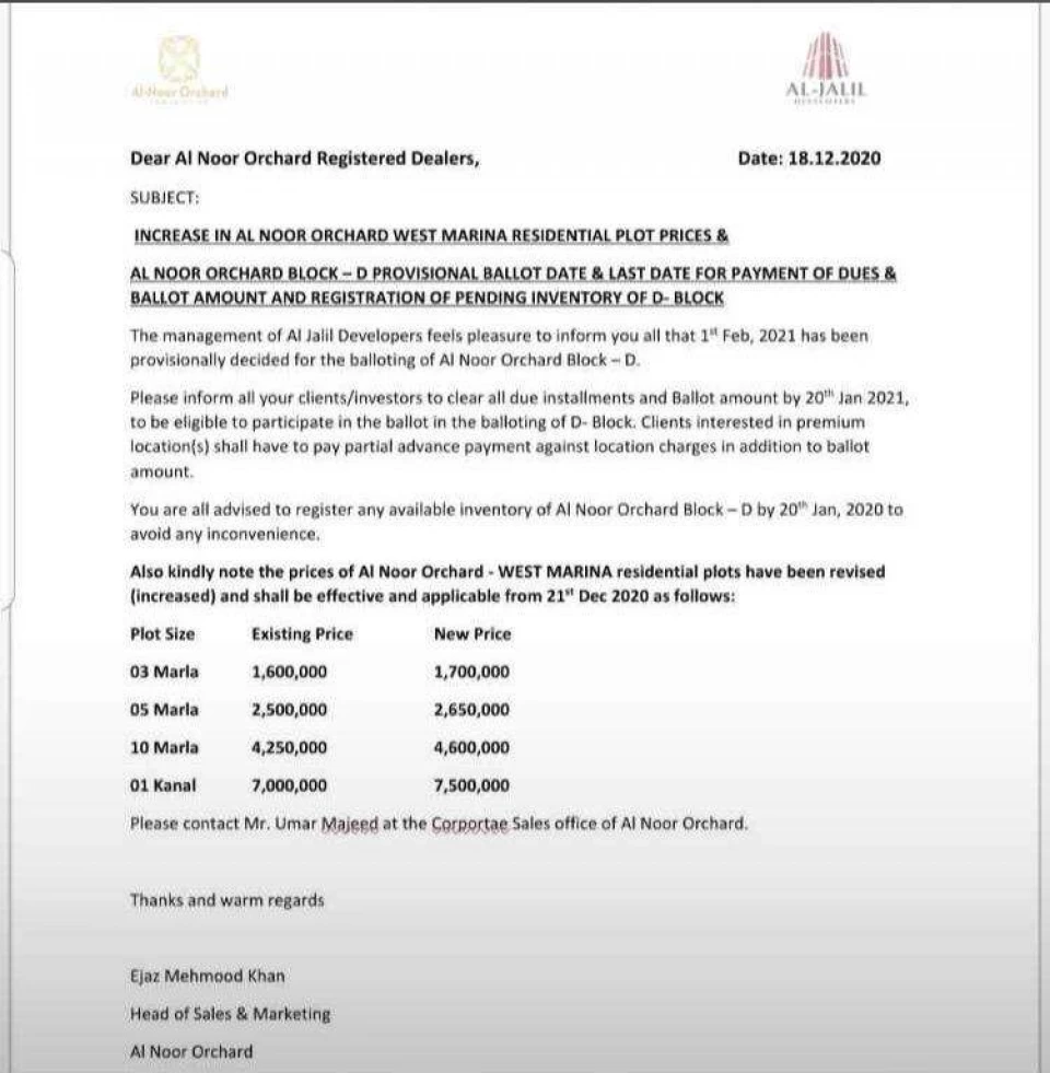 Al-NOOR ORCHARD file are available on old rates.