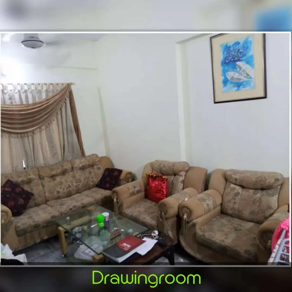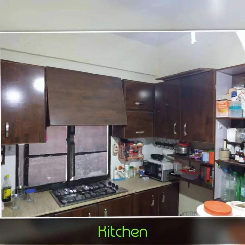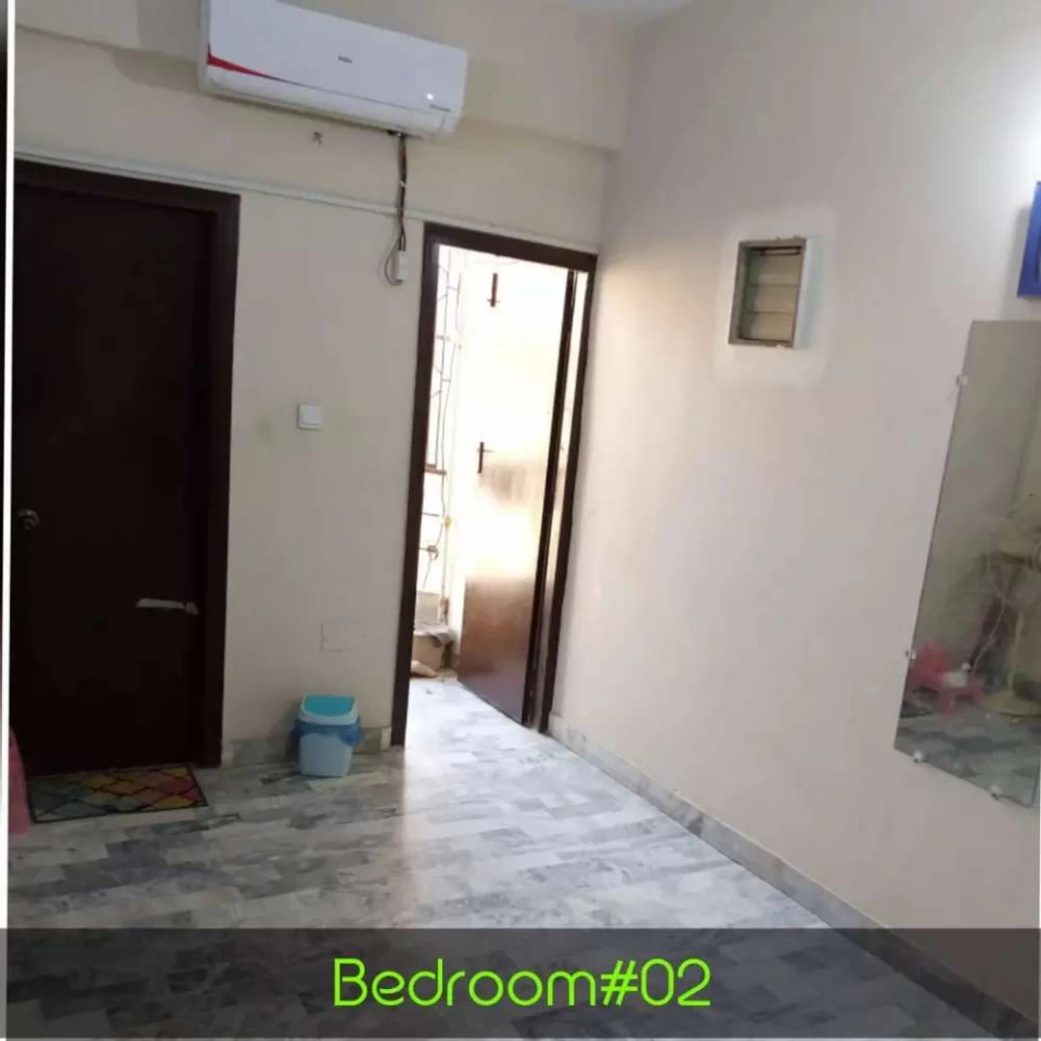 Flat having 2 bedrooms with attached baths, 1 common room and 1 drawing room. Located in main city in Nazimabad area near Ahbab sweets. Condition very good and building condition is also very good with 24 hours water availability. For more information