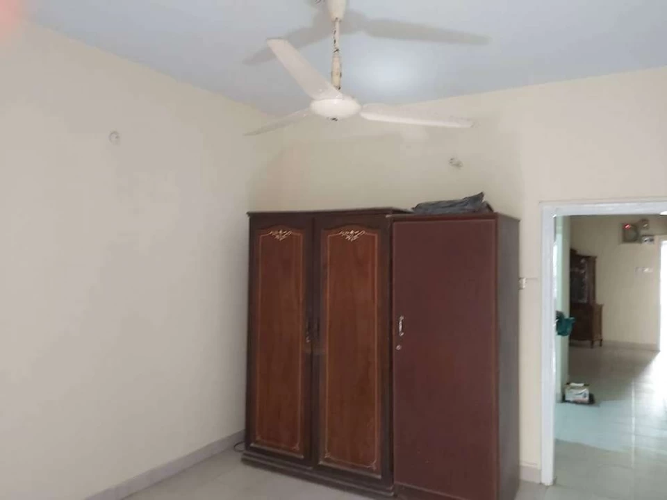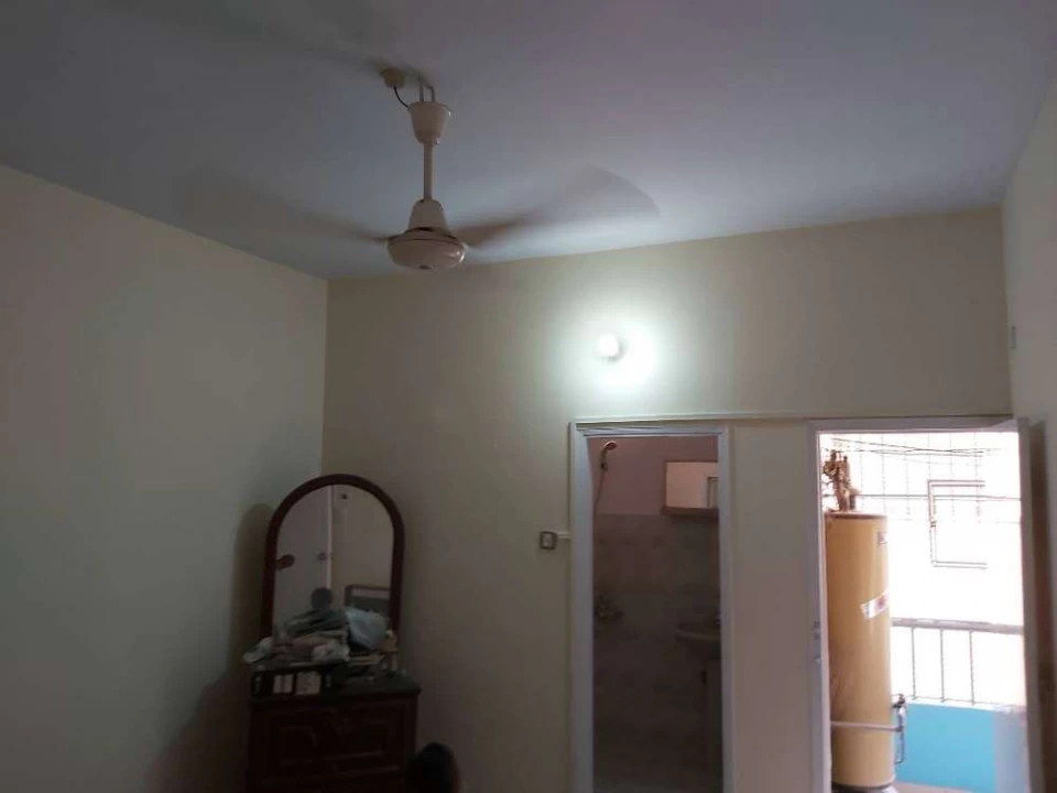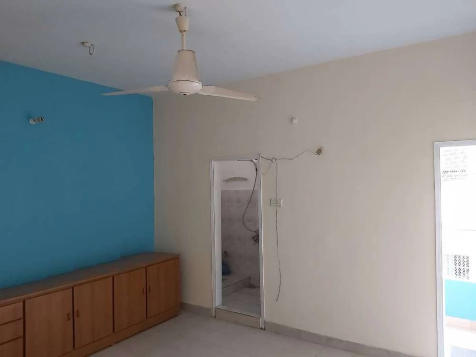 Nazimabad No 3, First floor, Block-G. 3 bedrooms with attached bathrooms, drawing room, lounge, west open, car parking, gallery front and back, washing area, ample sweet water (plus boring), sub-leased