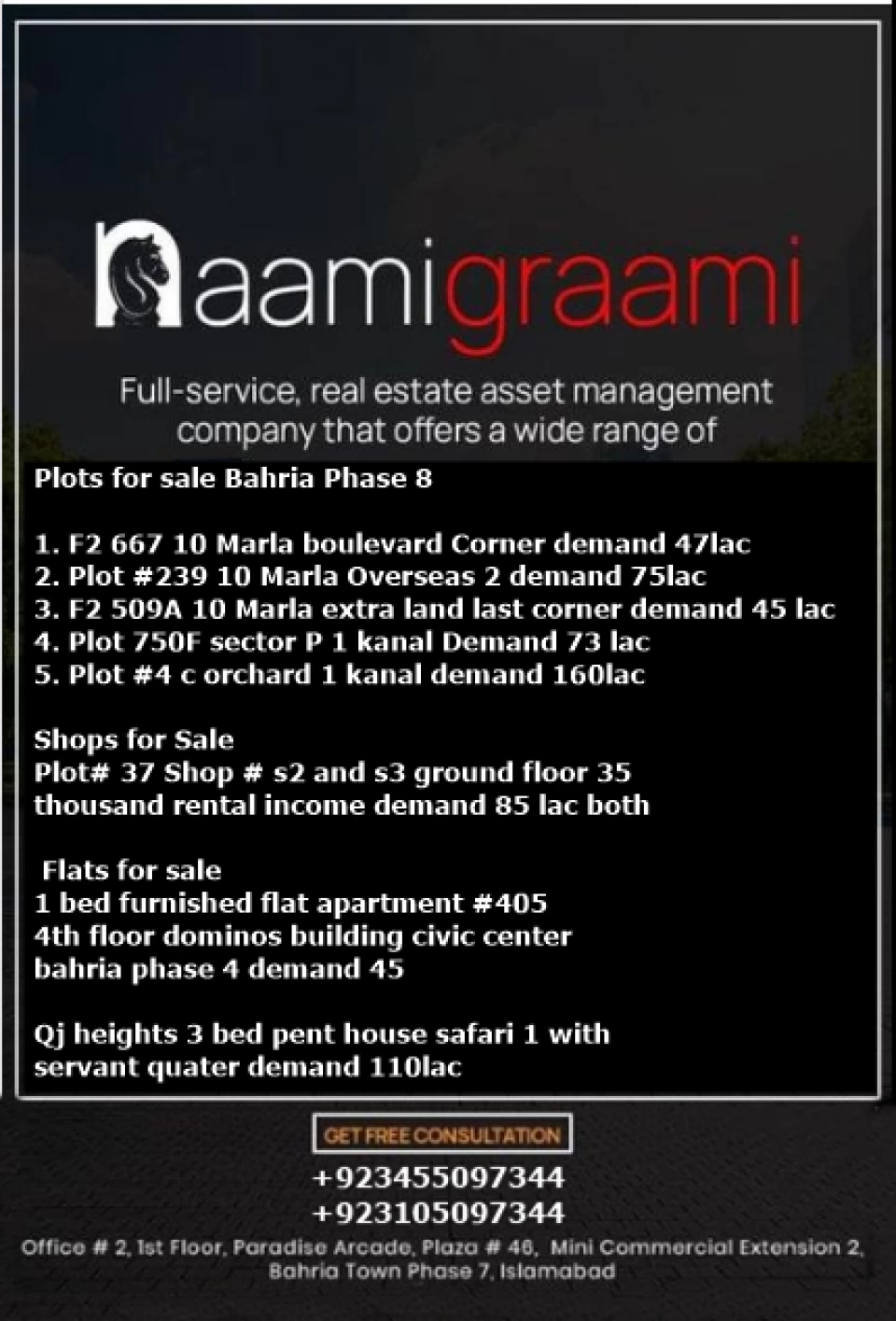 1 bed furnished flat apartment #405 4th floor dominos building civic center bahria phase 4 demand 45