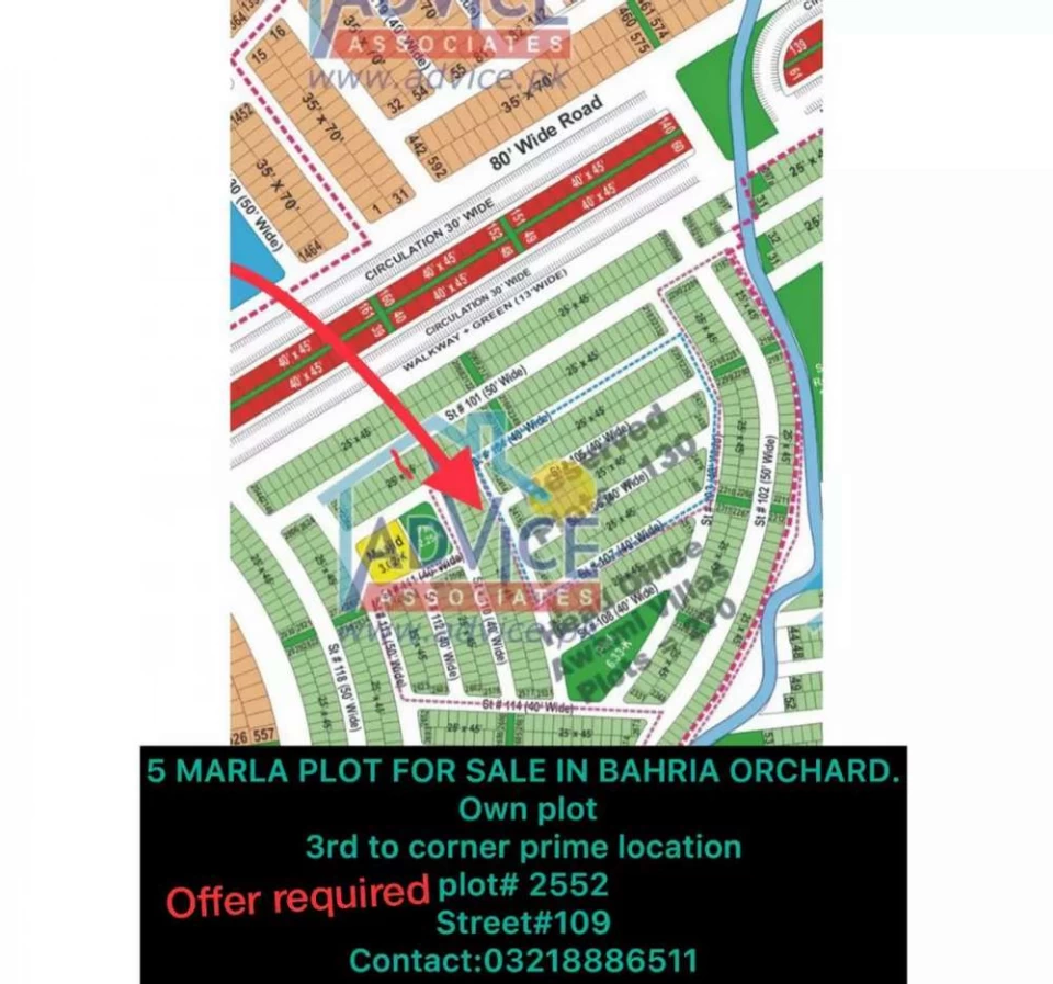 Residential and commercial plots avaiable at behria orchad islamabad