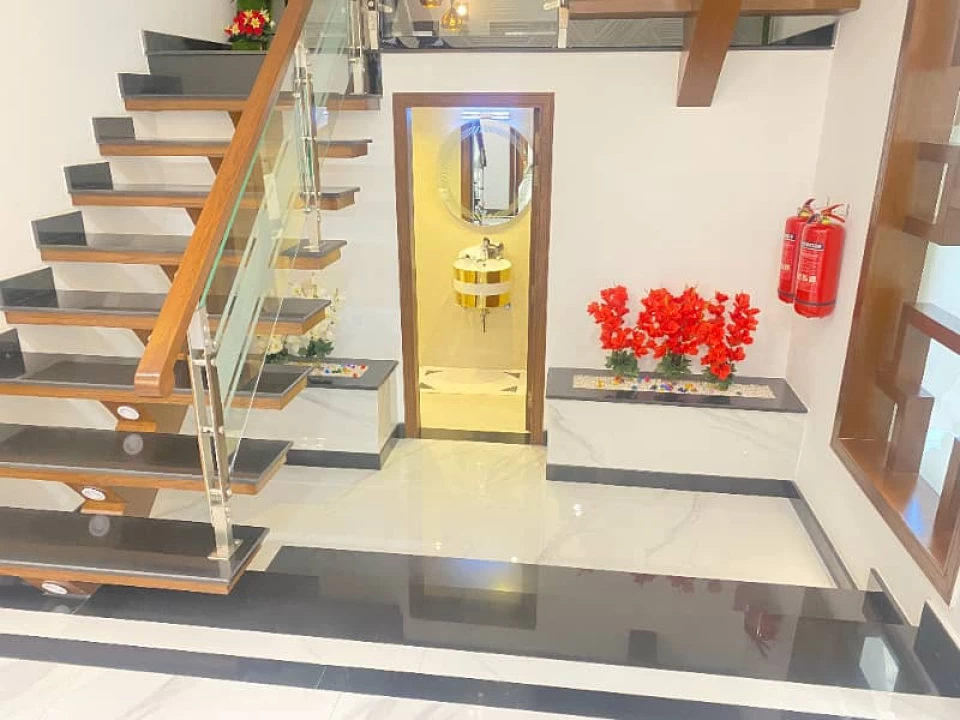 - Complete marble tiled wooden flooring